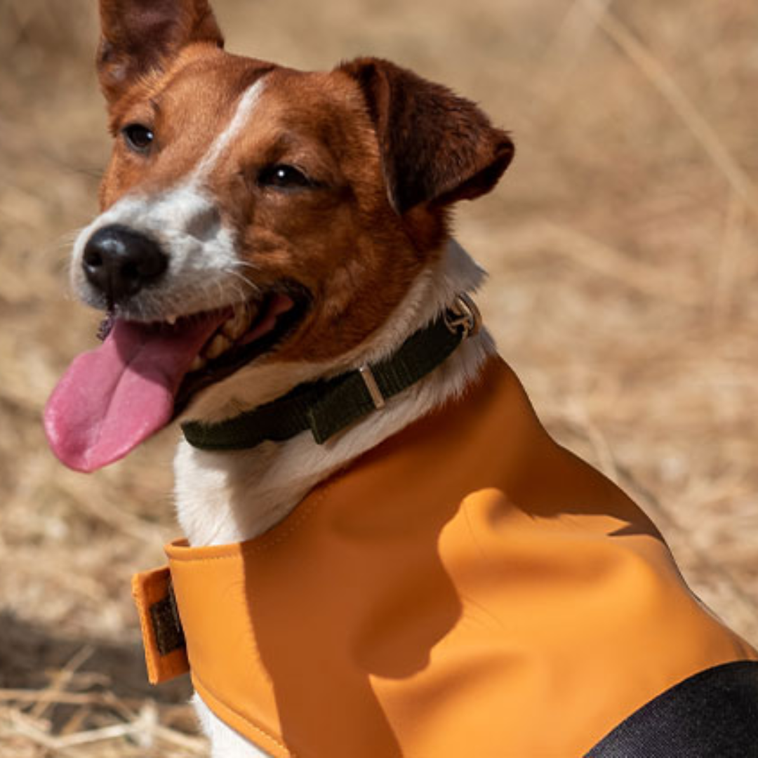 La nostra linea di prodotti pet include impermeabili e accessori realizzati con gli stessi standard eco-friendly e di alta qualità dei nostri capi.