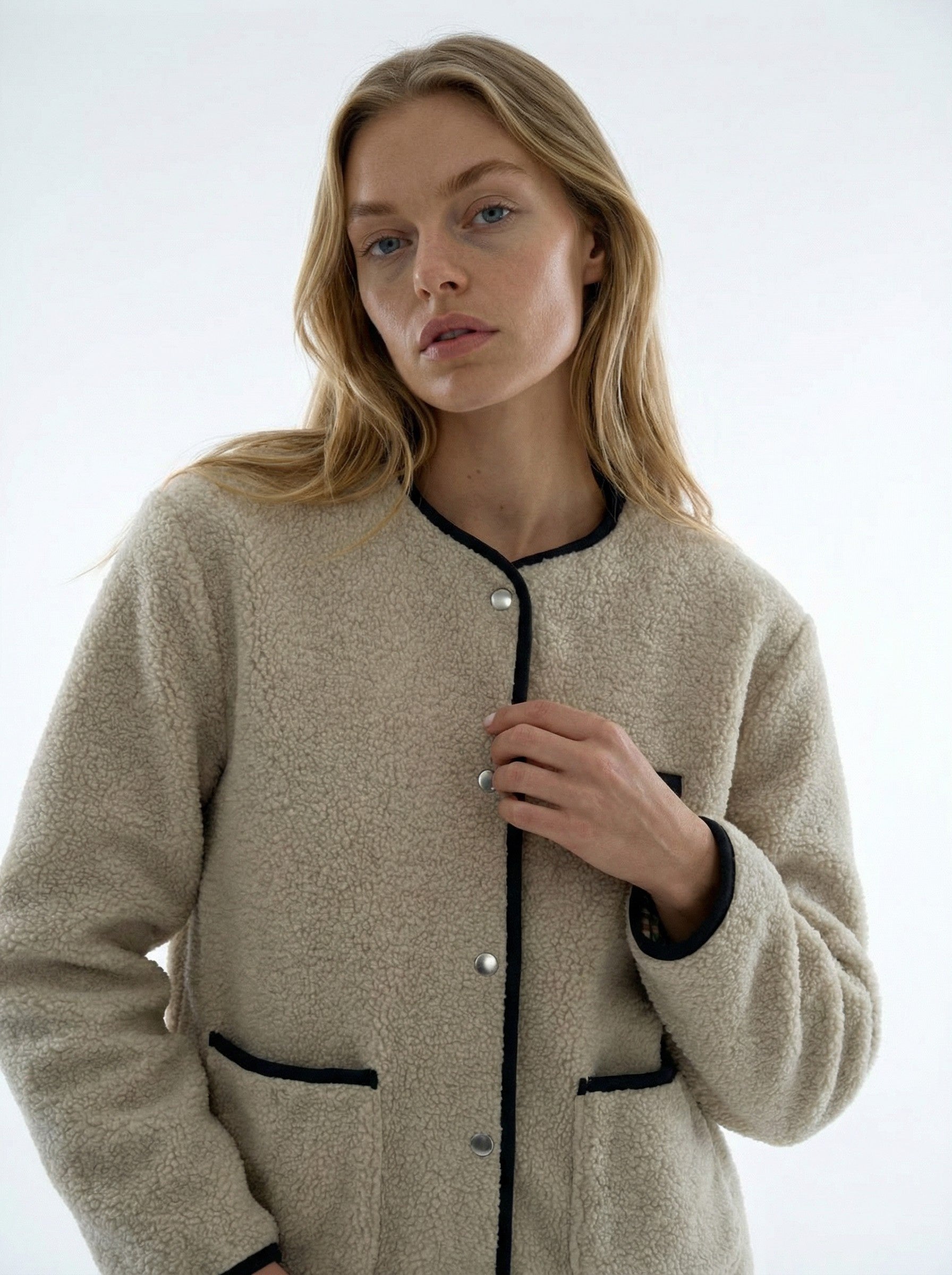 - Closure with buttons and zipper