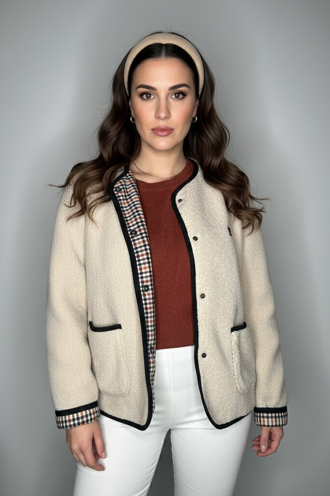 È completamente foderata con una fodera scozzese che richiama l’atmosfera elegante e autentica della campagna inglese, aggiungendo carattere e originalità al design.