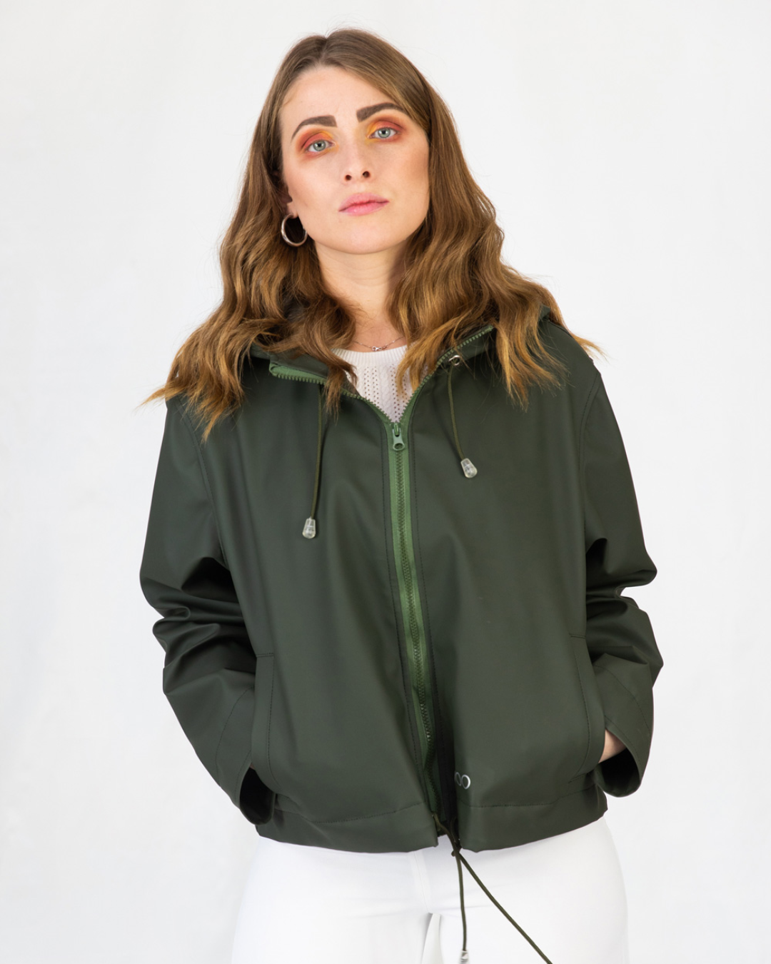 Il Bomber Raincoat di Woo Raincoats offre un mix perfetto di stile urbano e sostenibilità. Realizzato a mano a Mesagne, in Puglia, con materiali riciclati, questo impermeabile bomber è progettato per proteggerti dalla pioggia con un look casual e moderno. Ideale per un uso quotidiano, unisce comfort e rispetto per l'ambiente.