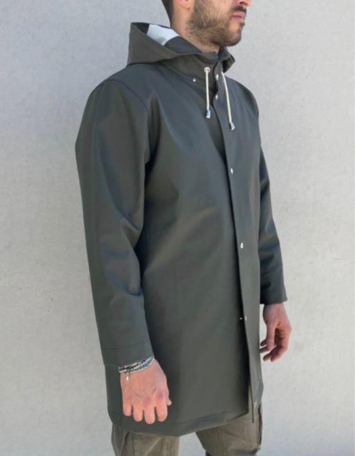 Scegli il Linear Raincoat di Woo Raincoats per un look sostenibile e alla moda.