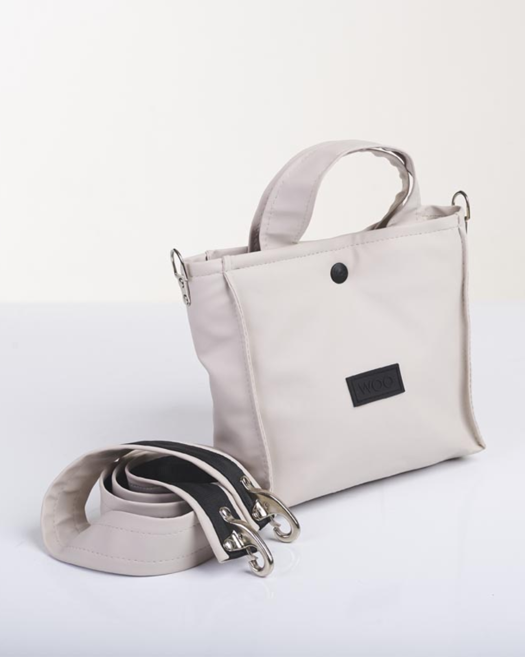 Scegli la Mini Square Bag di Woo Raincoats per un accessorio sostenibile e alla moda.