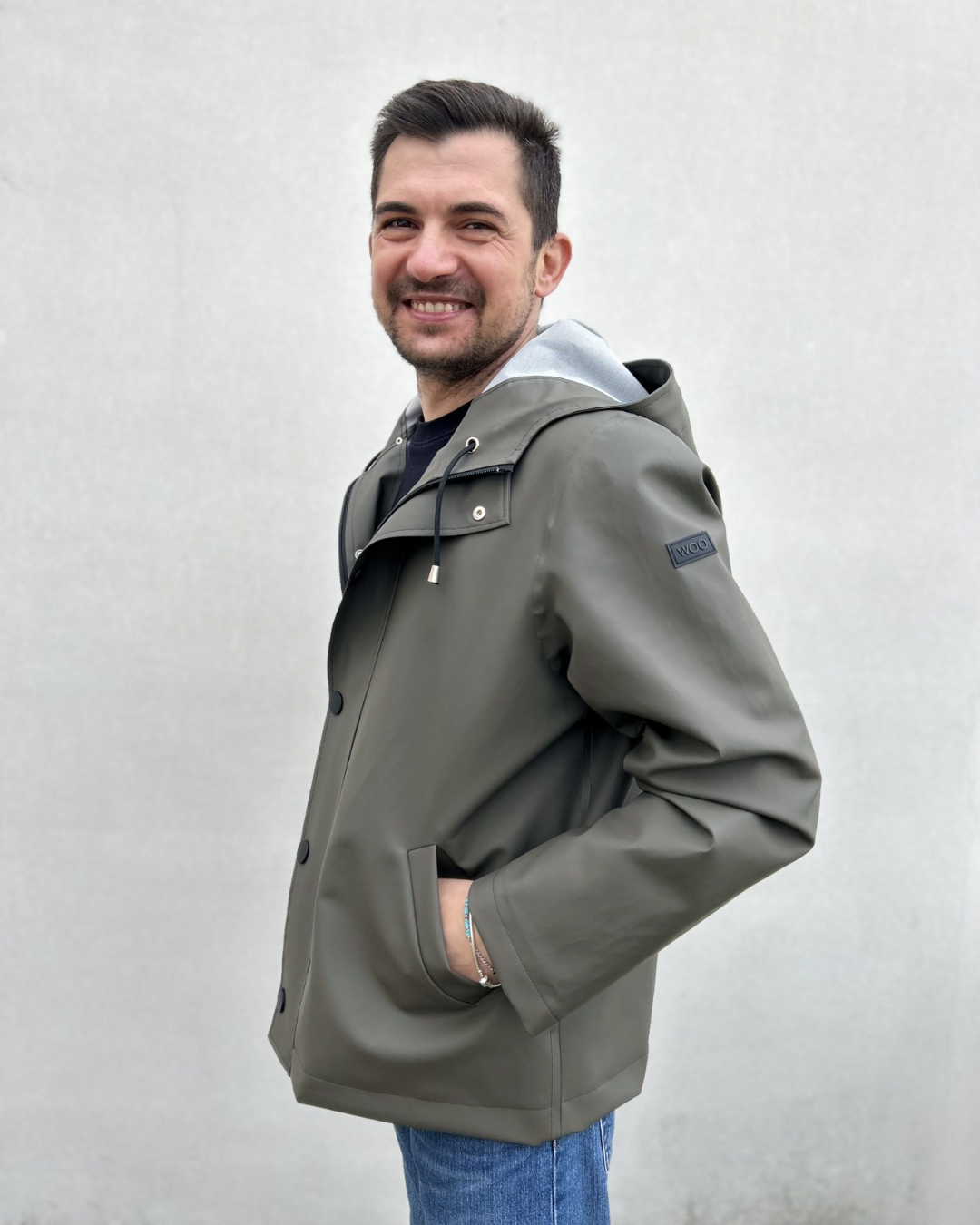 Il North Jacket di Woo Raincoats combina funzionalità e sostenibilità, offrendo una protezione superiore contro la pioggia con un design elegante e moderno. Realizzata a mano a Mesagne, in Puglia, con materiali riciclati, questa giacca impermeabile è ideale per ogni situazione.