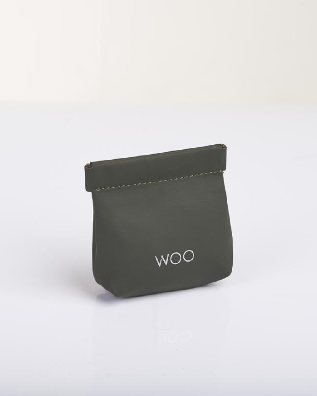 La Potty Case di Woo Raincoats è un portamonete compatto e sostenibile. Realizzata a mano a Mesagne, in Puglia, con materiali riciclati, questa custodia combina praticità ed eleganza in un design moderno.