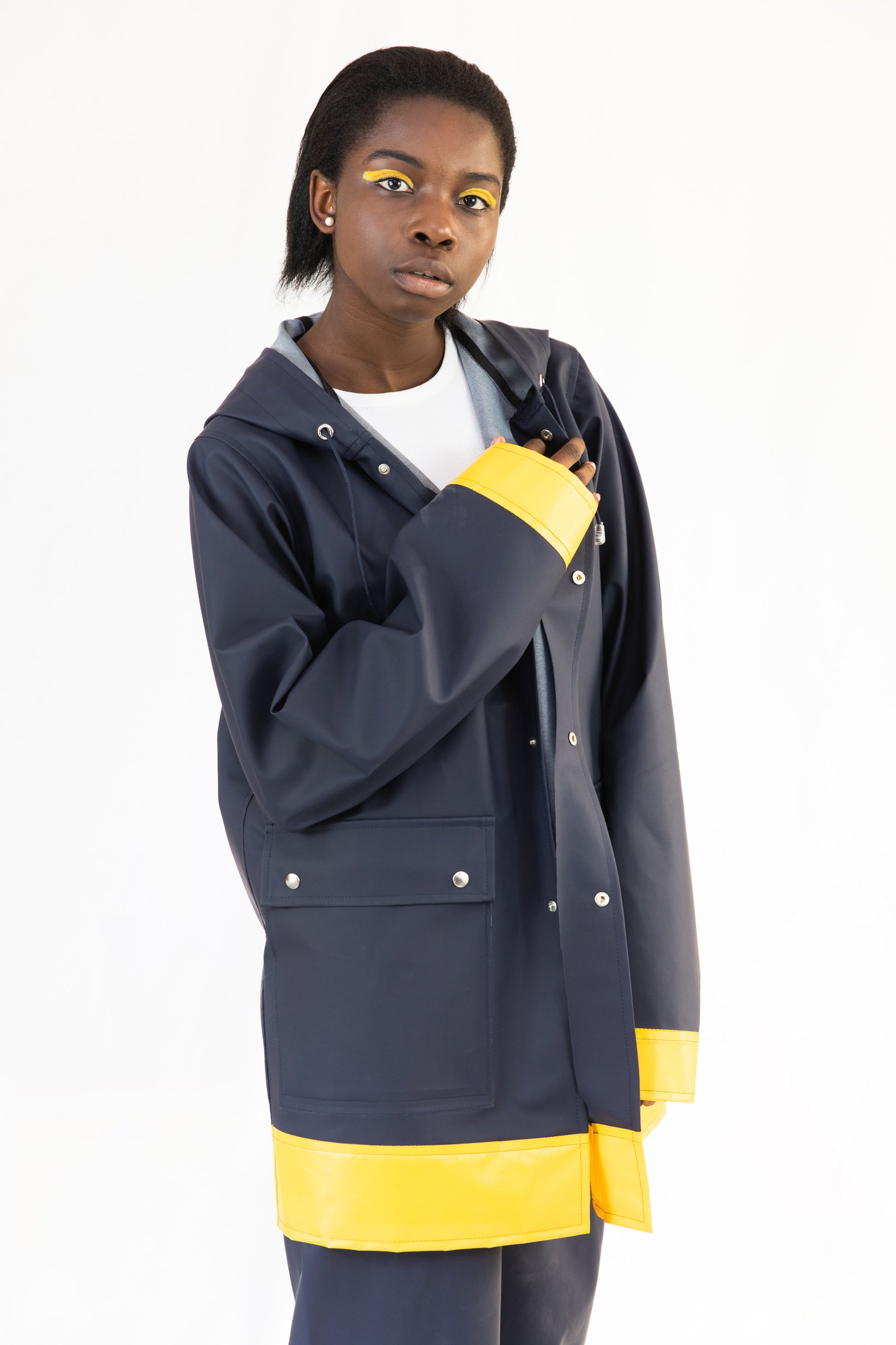 Scegli il Striped Raincoat di Woo Raincoats per un look sostenibile e alla moda.