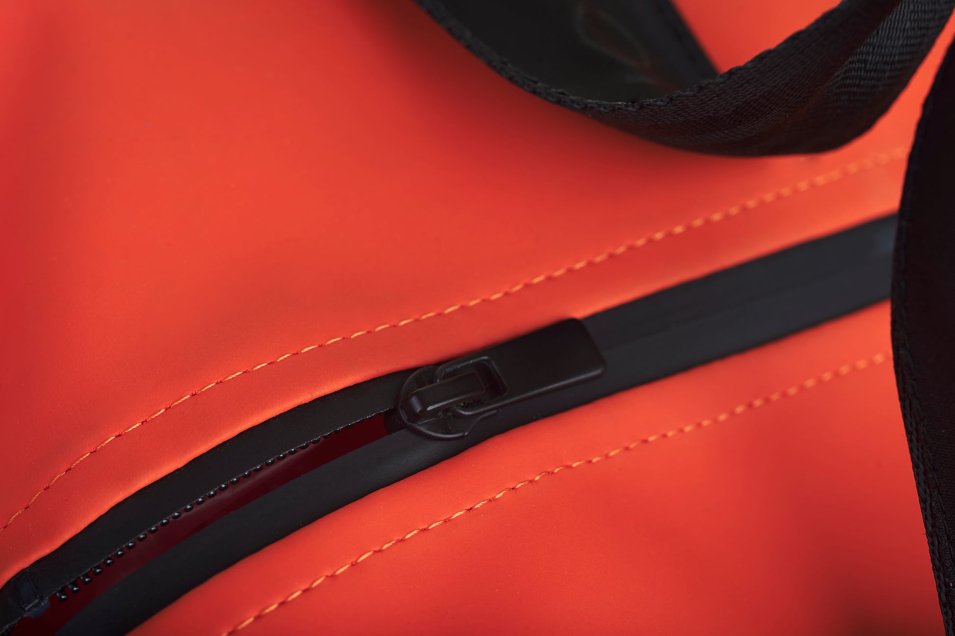 La Weekend Bag Waterproof Woo di Woo Raincoats è la compagna ideale per le tue fughe del weekend, combinando praticità e sostenibilità. Realizzata a mano a Mesagne, in Puglia, con materiali riciclati, questa borsa è progettata per essere resistente all'acqua, garantendo che i tuoi effetti personali rimangano asciutti e al sicuro.